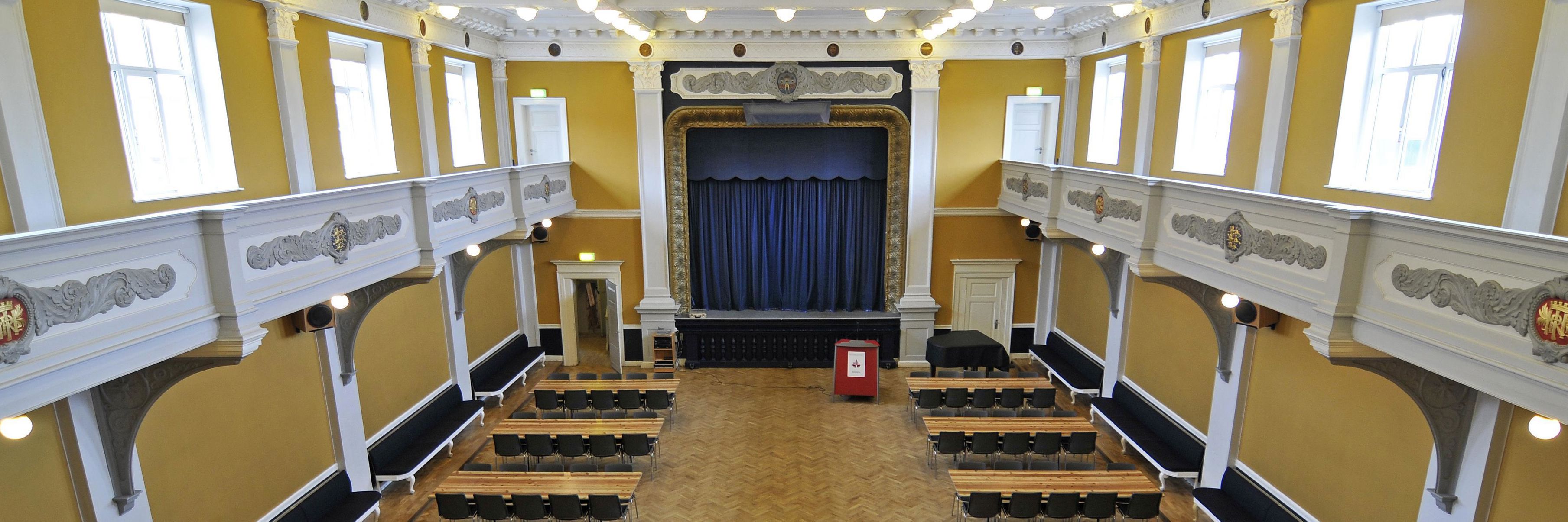 Fra scenen kan der spilles teater, revy, musik m.m. Scenen kan udvides ved hjælp af podier.
